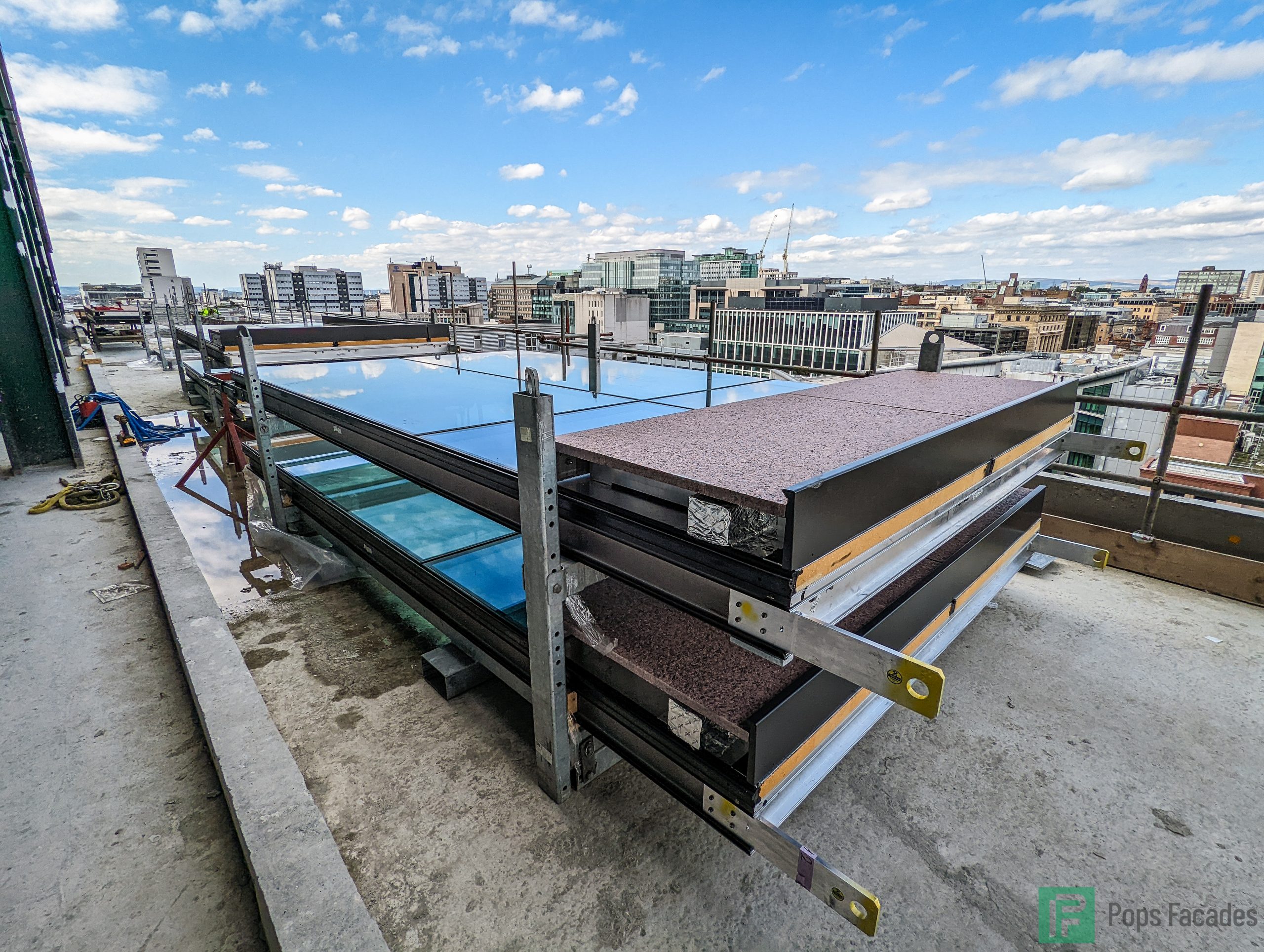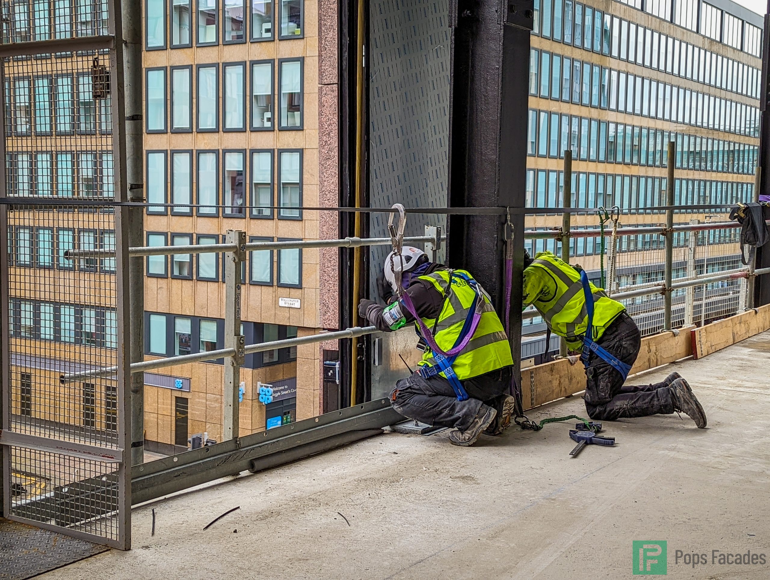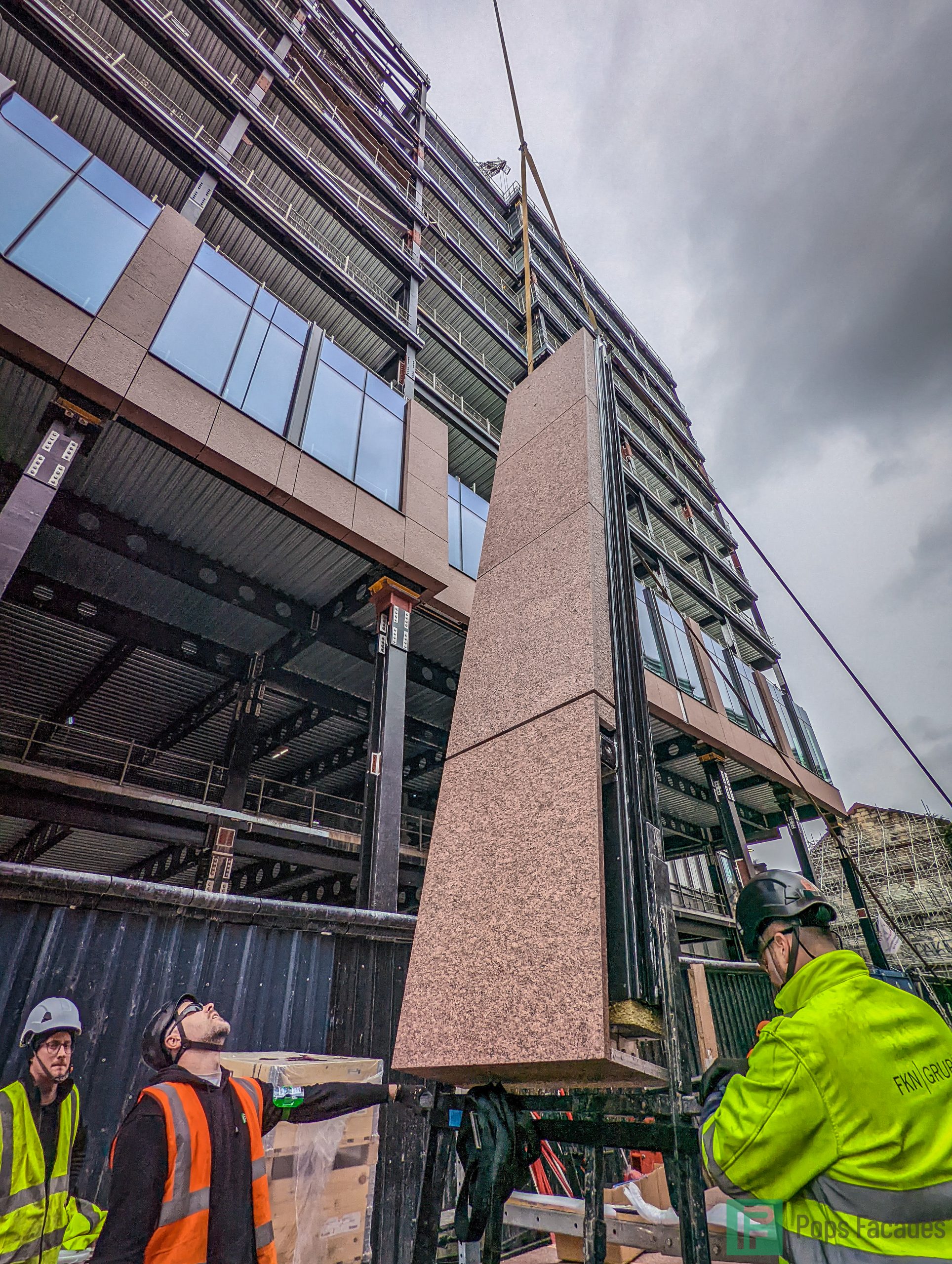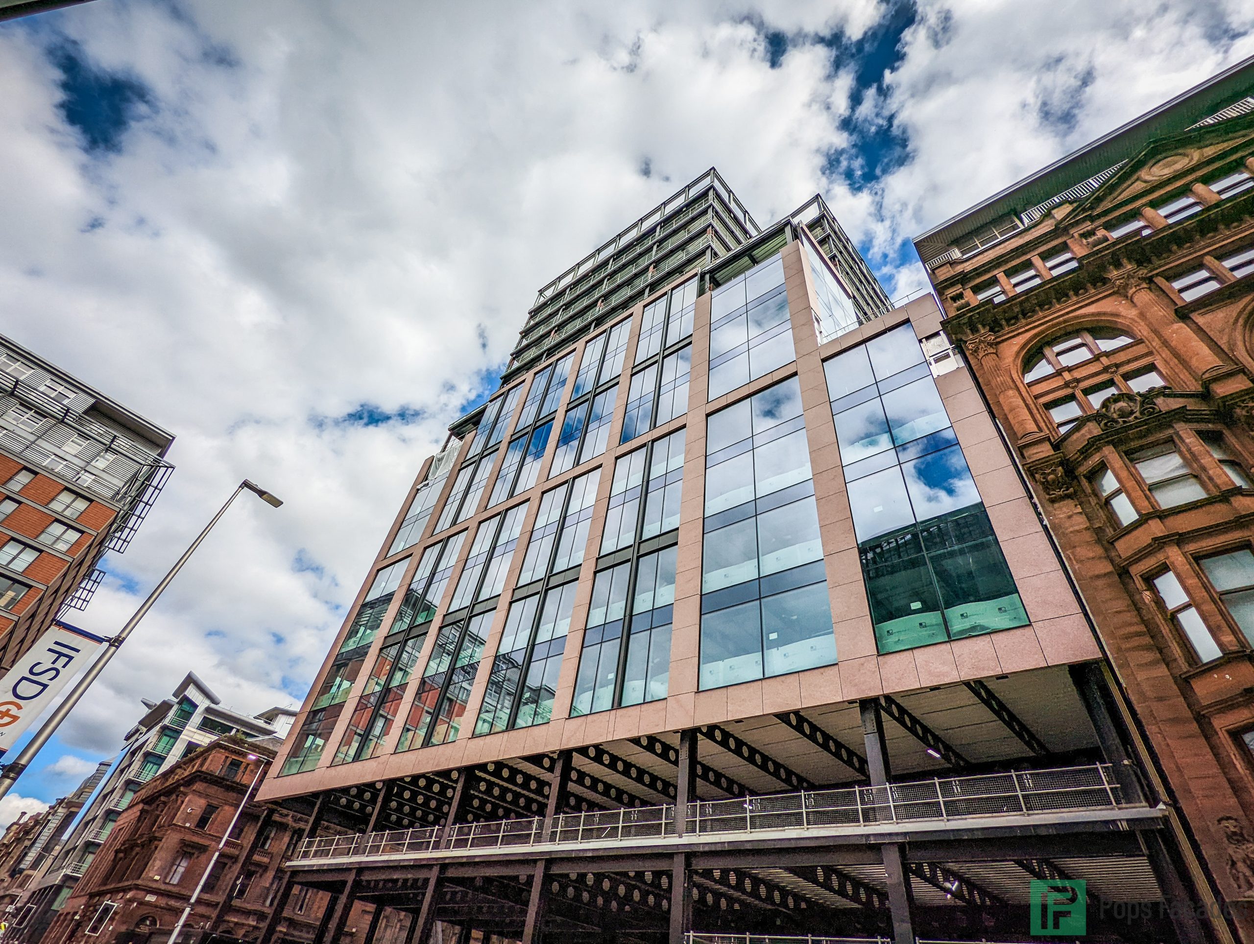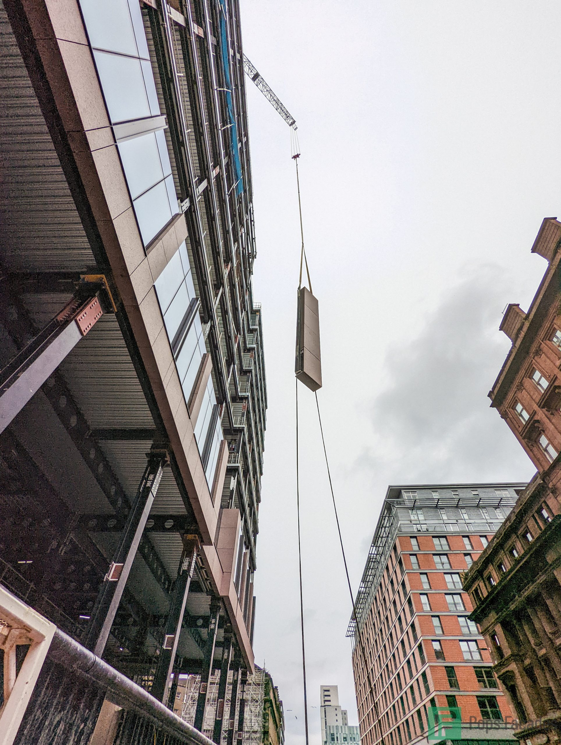 FKN Group employed Pops to install the unitised curtain wall systems for Main Contractor Multiplex. A new 270,000ft², 15 storey grade A office building for JP Morgan Chase, situated on Argyle street in Glasgow city centre.