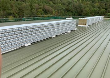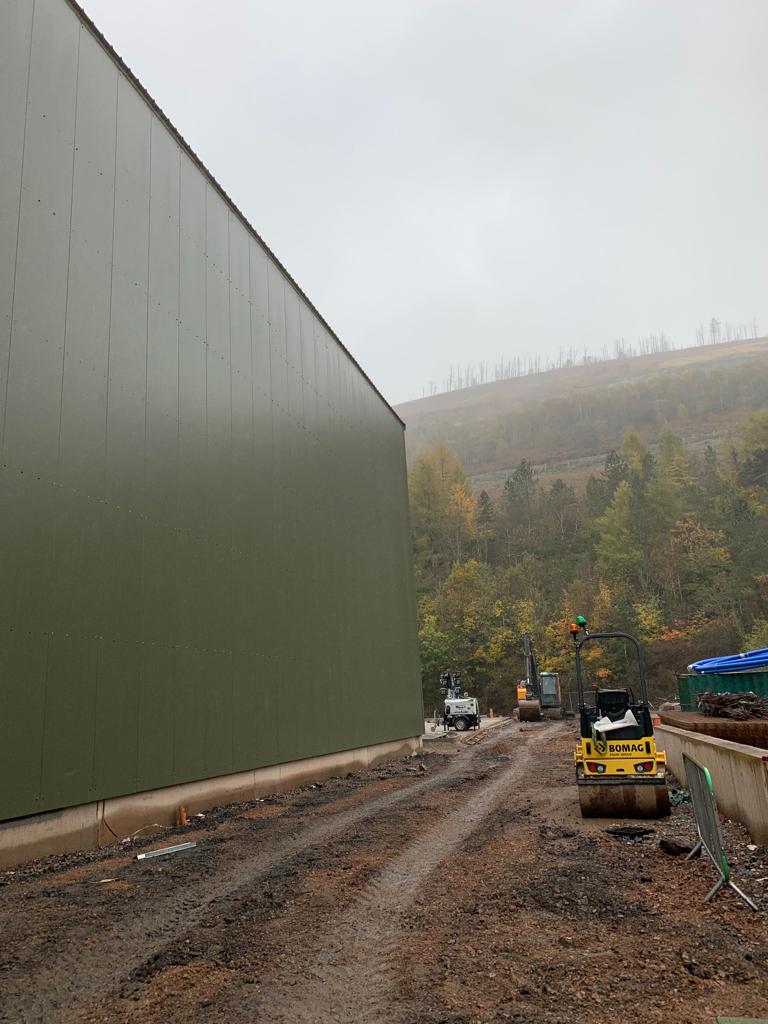 Pops were employed to install 35,000ft2 of Trimoterm FTV fire resistant panels and 40,000ft2 of Trimo Trapezoidal fire resistant insulated roofing panels to brand new recycling plant at Newport’s nine mile point industrial estate. This included the installation of all flashings, trims, guttering and rainwater pipework and more.